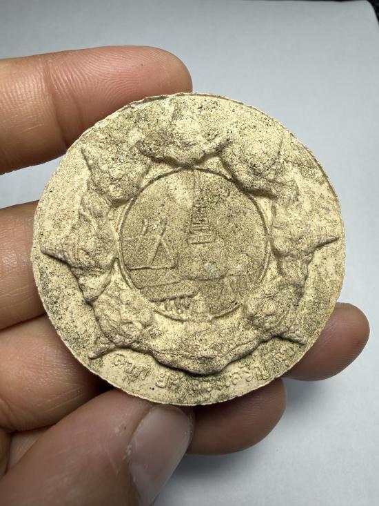 เงินไหลมา 1 4.8 cm เนื้อขาวโรยผงตะไบ หน้าองค์พ่อหลังพระธาตุใหญ่ พิมพ์นิยม เนื้อจัดมาก -150-
