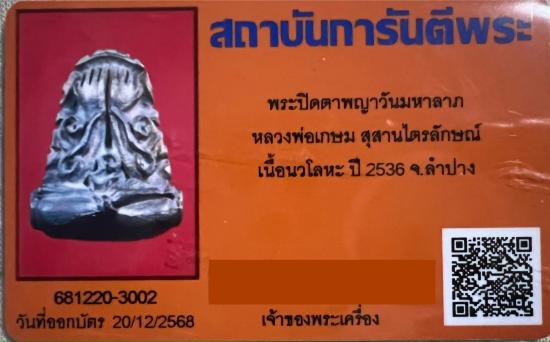 ชื่อพระเครื่อง พระปิดตาพญาวันมหาลาภ หลวงพ่อเกษม เขมโก ปี 36 เนื้อนวะโลหะ