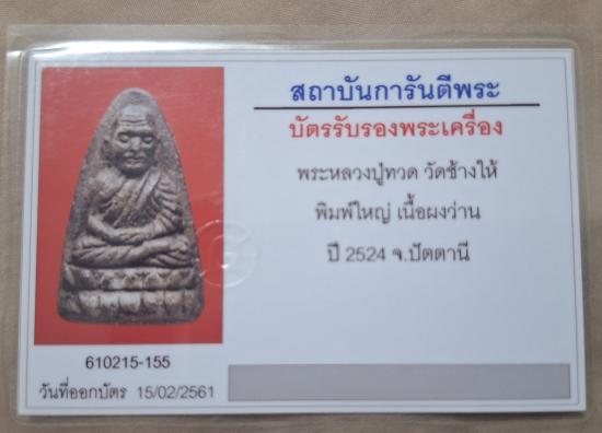 หลวงพ่อทวดเนื้อว่าน. ปี24 พิมพ์ใหญ่เลี่ยมเงิน รับประกันพระแท้ตามกฎ