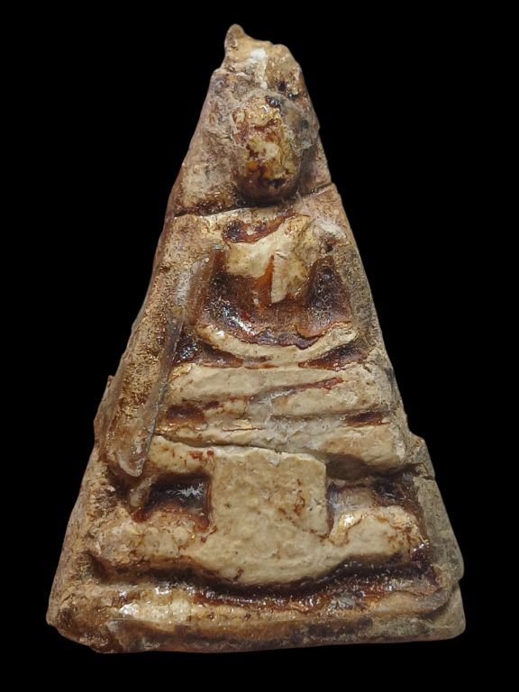 พระกรุวัดสามปลื้ม พิมพ์สามเหลี่ยม เนื้อผง กรุงทพฯ สภาพชำรุด