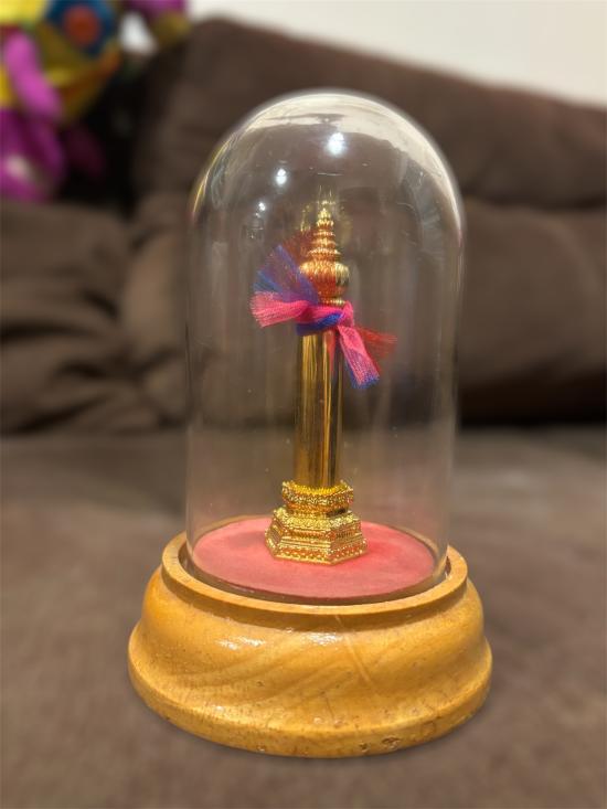 เสาหลักเมืองจำลองกรุงเทพขนาดจากฐานถึงครอบแก้ว5.5นิ้ว ตัวหลักเมืองเป็นโลหะ ใต้ฐานจุแป่นยันต์ดวงเมืองใต้ฐานพิธีมังคลาภิเษกในศาลหลักเมืองโดยพระเกจิ