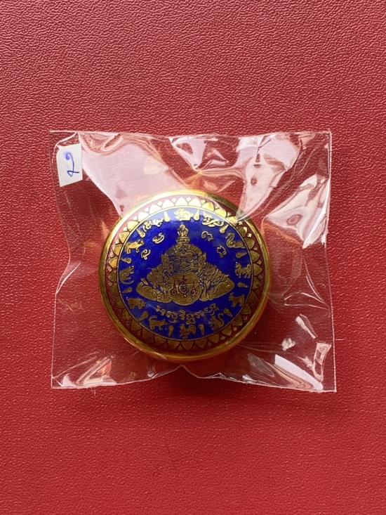 เนื้อ โลหะชุบทองลงยาสีน้ำเงิน ขอบสีแดง ขนาด3.2ซม |