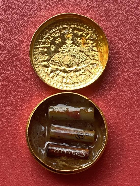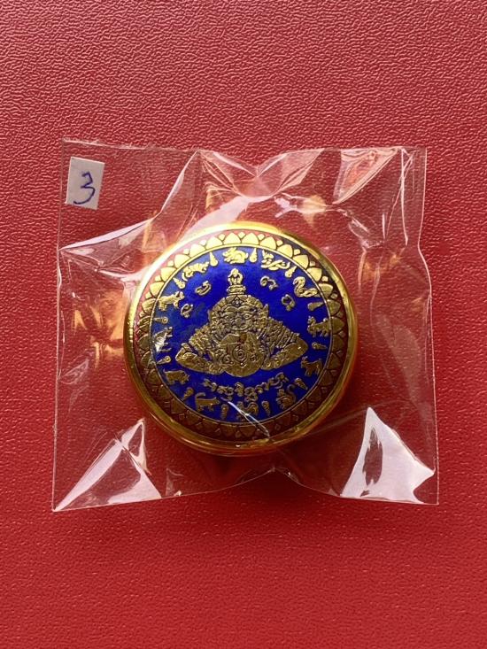 เคาะเดียวแดง สีผึ้งพระราหู รุ่น มงคลจักรวาล เนื้อ โลหะชุบทองลงยาสีน้ำเงิน ขอบสีแดง ขนาด3.2ซม |