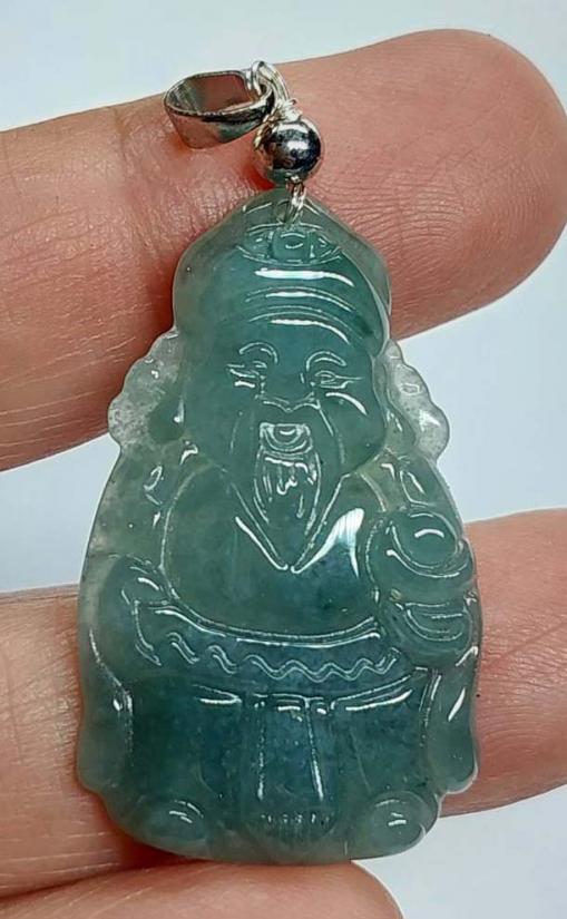 ***วัดใจ***จี้หยก เทพเจ้าไฉ่ซิงเอี้ย สีโอเชี่ยนบลู เนื้อวุ้น สุง 3.5 ซม. |