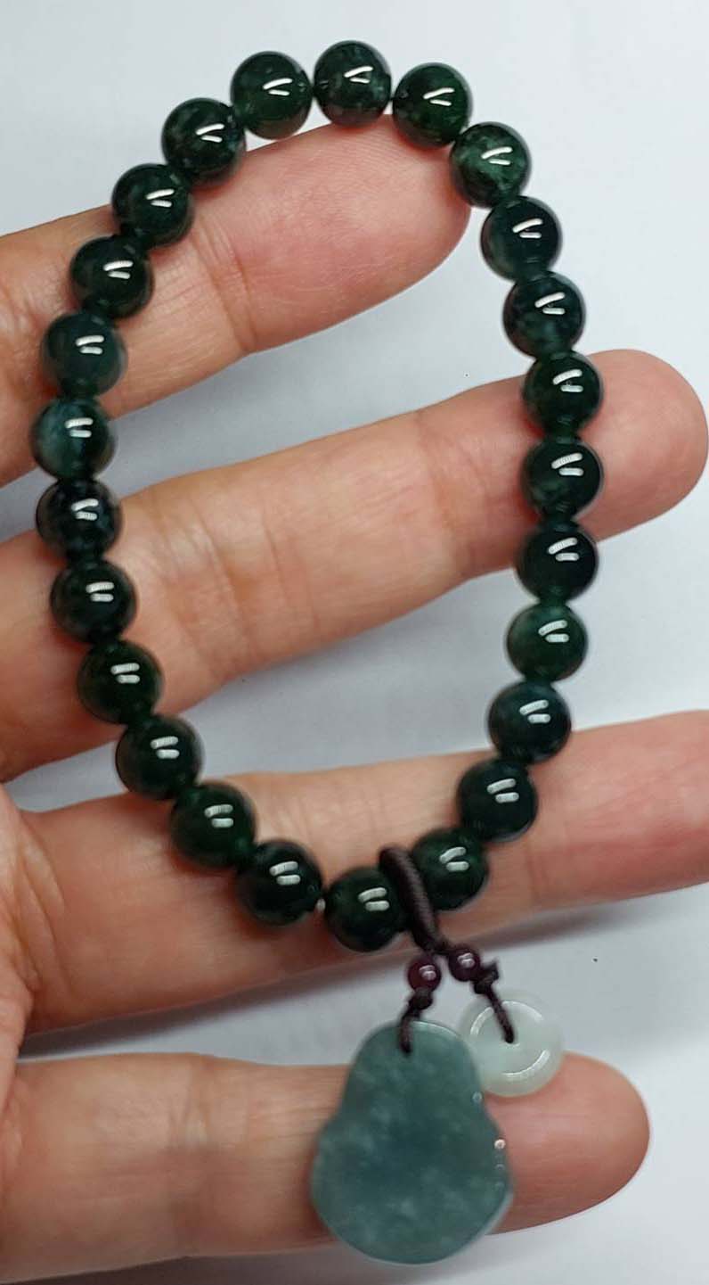 ***วัดใจ***สร้อยข้อมือ หยกจักรพรรดิ์ พร้อมจี้ เม็ด 8 มิล สวยๆ |