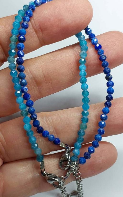 ***วัดใจ***สร้อยข้อมือหิน ลาพิส ลาซูลี กับ หินนำโชค อความารีน 2 มิล เจียร์เหลี่ยม |