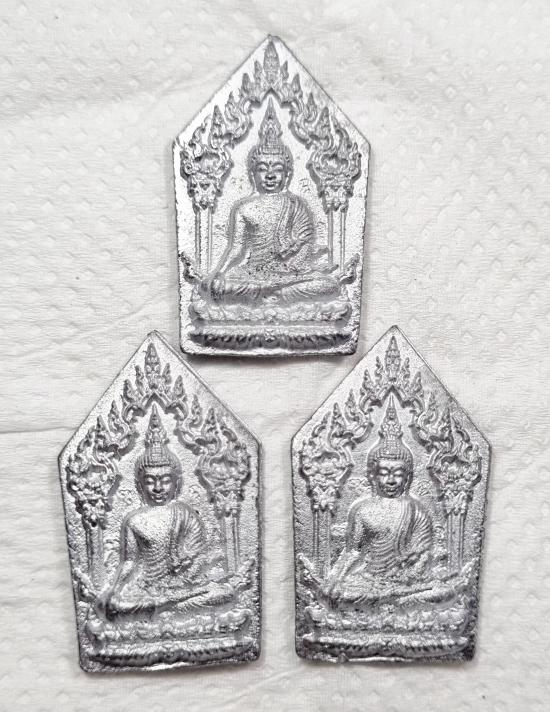 พระขุนเเผน แรงครู พลิกชีวิต พระอาจารย์แจ้ วัดน้อมประชาสรรค์ เหรียญหล่อตะกั่วมหายันต์ 3องค์ ไม่มีกล่อง (G) |