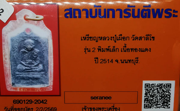 เหรียญหลวงปู่เผือก วัดสาลีโข รุ่น2 พิมพ์เล็กมือจุด เนื้อทองแดง ปี2514 จ.นนทบุรี + บัตรG-pra สภาพเดิมค่ะ สภาพตามรูปทุกประการค่ะ