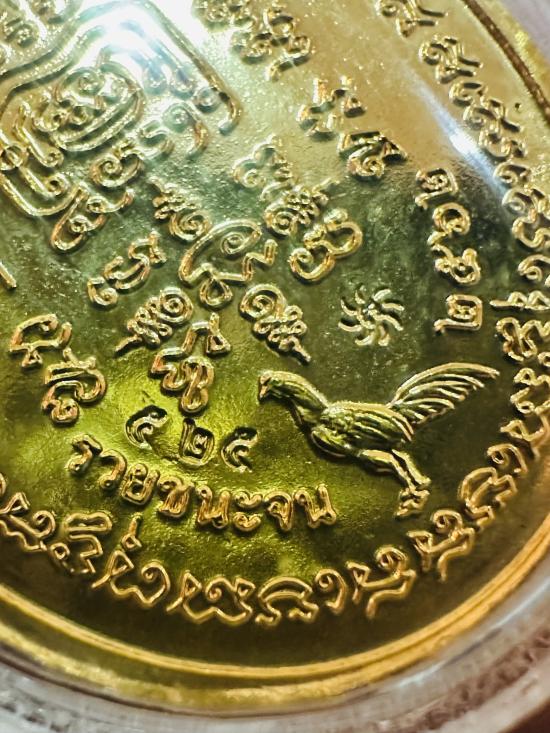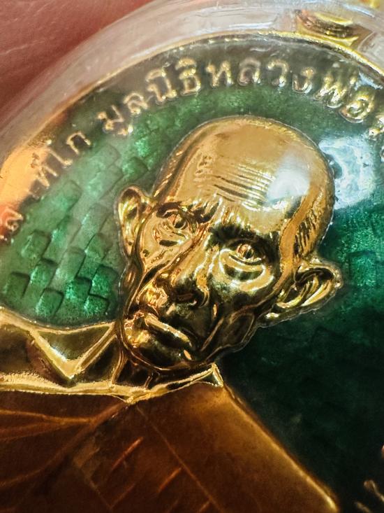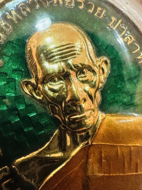 เหรียญหลวงพ่อรวย วัดตะโก อยุธยา รุ่นรวยชนะจนปี62 เนื้อกะไหล่ทองลงยาเขียว เลขโค้ด 525 จมูก100