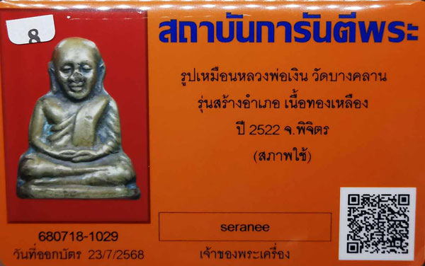 รูปเหมือนหลวงพ่อเงิน วัดบางคลาน รุ่นสร้างอำเภอ เนื้อทองเหลือง กริ่งดัง ปี2522 จ.พิจิตร + บัตรG-pra สภาพระบุตามบัตรรับรอง สภาพตามรุปทุกประการค่ะ