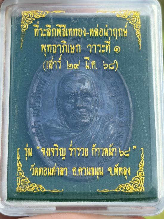 เหรียญพระอาจารย์นำ ที่ระลึกพิธีเททอง-หล่อนำฤกษ์ พุทธาภิเษก วาระที่ 1 รุ่น "จงเจริญ ร่ำรวย ก้าวหน้า 68" วัดดอนศาลา จ.พัทลุง พิมพ์ใหญ่ เนื้อทองแดงรมดำ พร้อมกล่อง เลข641 |
