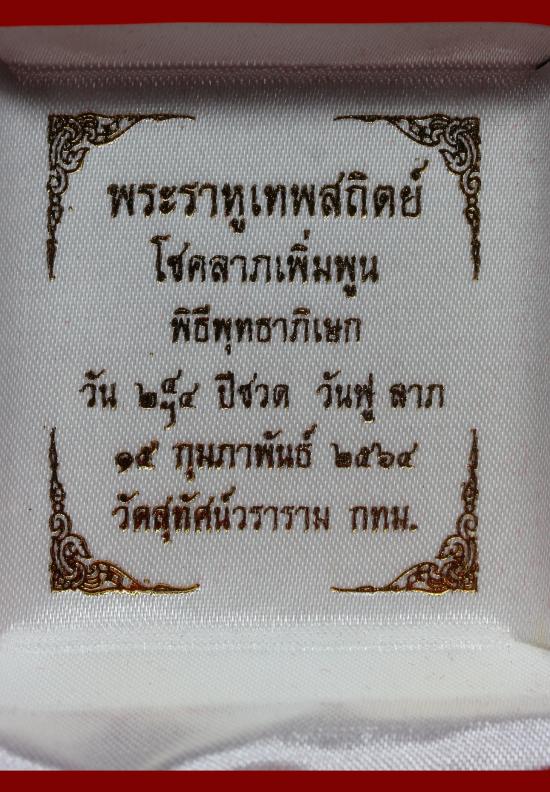 พระราหูเทพย์สถิตย์ รุ่นโชคลาภเพิ่มพูน เนื้อกะลาแกะ พ.ศ. 2564 วัด / กรุ วัดสุทัศนเทพวรารามราชวรมหาวิหาร จังหวัด กรุงเทพมหานคร |