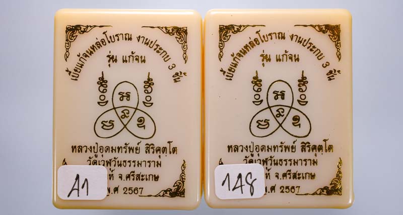 *ทีเดียว 2 ลูก 2 เนื้อ หลวงปู่มหาศิลาร่วมเศก เบี้ยแก้จนหล่อโบราณ ประกบ3ชิ้น อุดมวลสาร หลวงปู่อุดมทรัพย์ สิริคุตโต วัดเวฬุวันธรรมาราม สวยมาก เคาะเดียวแดง* |