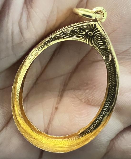 (กรอบมือ2 ทองคำแท้) เหรียญรูปไข่ น้ำหนักทอง 3.1 กรัม ทอง 58% กรอบสภาพสวยๆ ไม่บุบ ไม่ฉีก ขอบพับเรียบ ครับ