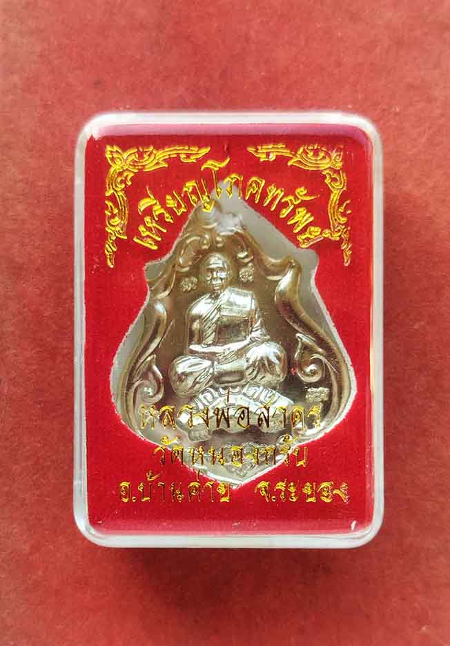 เหรียญโภคทรัพย์(ขี่เต่า) หลวงพ่อสาคร วัดหนองกรับ จ.ระยอง ปี 2552 เนื้ออัลปาก้า no.3546 กล่องเดิม สร้าง 3999 องค์ พิธีพุทธาภิเษก ปลุกเสกเดียวนานเกือบ 2 ชั่วโมง ไม่น่าเชื่อ ก็ต้องเชื่อ ขณะเริมพิธีพุทธาภิเษก ฝนตกหนัก พอจบพิธี และดับเทียนชับ ฝนหยุดตก เป็นพระเกจิชื่อดังแห่งเมืองระยอง ศิษย์เอกหลวงปู่ทิม เพื่อศึกษาพระธรรมวินัย และพุทธาคมจากหลวงปู่ทิมวัดละหารไร่อย่างจริงจัง หลังจากนั้นจึงได้รับการถ่ายทอดวิชาอาคมต่างๆ จากหลวงปู่ทิม จนหมดสิ้นโดยมิได้ปิดบังแต่อย่างใด เรียกได้ว่าเรียนได้กระจ่างชัดรู้จริง สามารถปฏิบัติได้เมื่อมีความเชี่ยวชาญในคาถาอาคมต่างๆ ที่เรียนแล้วด้วยใจรักในด้านนี้ ต่อมา จึงได้เสาะแสวงหาศึกษาวิชาอาคมจากหลวงพ่อเพ่ง สาสโน วัดละหารใหญ่ ซึ่งหลวงพ่อเพ่ง เดิมเป็นมหาดเล็กในสมเด็จเตี่ย กรมหลวงชุมพรเขตอุดมศักดิ์ฯ จึงได้ศึกษาอาคมจากหลวงปู่ศุข วัดปากคลองมะขามเฒ่า มีวิชาด้านคงกระพันเป็นเยี่ยมเขียนอักขระลงบนแผ่นตะกั่วเพียงตัวเดียวให้คนทดลองยิงแต่ก็ยิงไม่ออก จนโด่งดังเป็นที่ศรัทธาของลูกศิษย์จนทุกวันนี้ พุทธคุณดีเด่นด้าน เมตตามหานิยม โชคลาภ อุดมทรัพย์ แคล้วคลาดปลอดภัยอันตรายทั้งปวง |