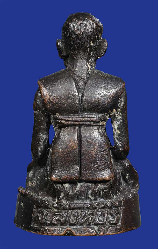 รูปหล่อหลวงปู่บุดดา รุ่นบรรจุแป้งเสก ปี 2536 เนื้อทองแดงรมดำ วัดกลางชูศรีเจริญสุข จ.สิงห์บุรี |