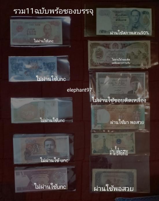 *AAAธนบัตรไทย+ต่างประเทศจำนวนรวม11ฉบับตามรายละเอียดกำกับในรูปใช้หมุนเวียนในระบบเงินจริงมีลายน้ำมีเลขฉบับกำกับสวยทุกฉบับพร้อมซองใส่บรรจุ |