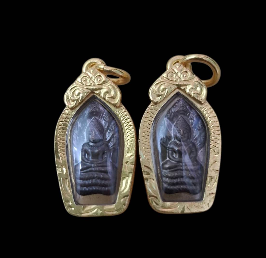มา 2 องค์ พระปรกใบมะขาม หลวงพ่อคูณ ปริสุทโธ 72 รุ่นเมตตาชายเเดนปี 2537 เนื้อนวะ พร้อมเลี่ยมกรอบชุบทองไมครอน พร้อมกล่อง