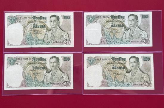 แบงค์ 20 บาท รัชกาลที่ 9 แบบที่ 11 4 ใบ สวย |