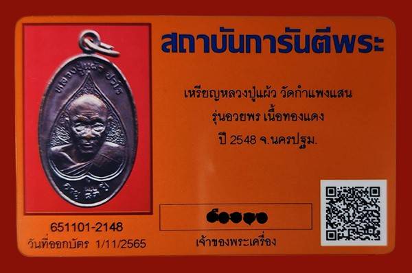 เหรียญหลวงปู่แผ้ว ปวโร เหรียญอวยพร ออกวัดกำแพงแสน 2548 เนื้อทองแดง สวย แรงด้วยประสบการณ์ พร้อมบัตร G... |