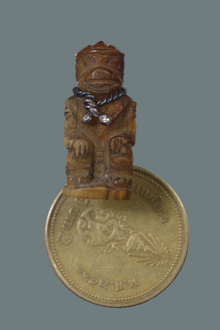 วัดใจ** เครื่องราง เขี้ยวแกะหนุมานหน้าขุนกระบี่ รัดลวดเงิน ของทนสิทธิ์มีดีในตัว ...ตามสภาพครับ
