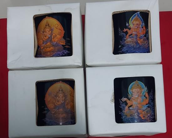 ขออนุญาติท่านอาจารย์เฉลิมชัยโฆษิตพิพัฒน์ขอแบ่งปันแก้วน้ำพ่อปู่พิฆเนศจำนวน4ใบมี2สีครับกล่องขาวโดนฝนชื้นเลยขึ้นคลาบครับแต่แก้วสวยสมบูรณ์ครับดูให้ชอบก่อนประมูลนะครับ |