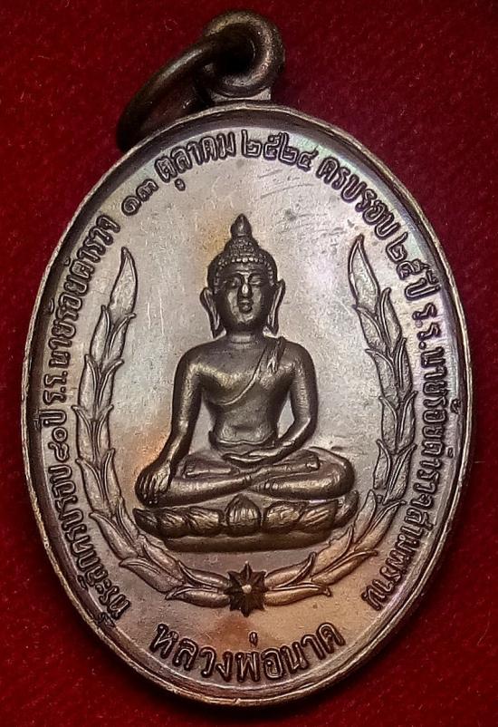 ด้านหน้า : เป็นหลวงพ่อนาคประทับนั่งปางมารวิชัยบนฐานบัวหงาย มีช่อชัยพฤกษ์โอบอุ้มและมีดาวแปดแฉกอยู่ที่ฐานของช่อชัยพฤกษ์ มีอักษรว่า "ที่ระลึกครบรอบ 80 ปี โรงเรียนนายร้อยตำรวจ 13 ตุลาคม 2524 และครบรอบ 25 ปี โรงเรียนนายร้อยตำรวจสามพราน