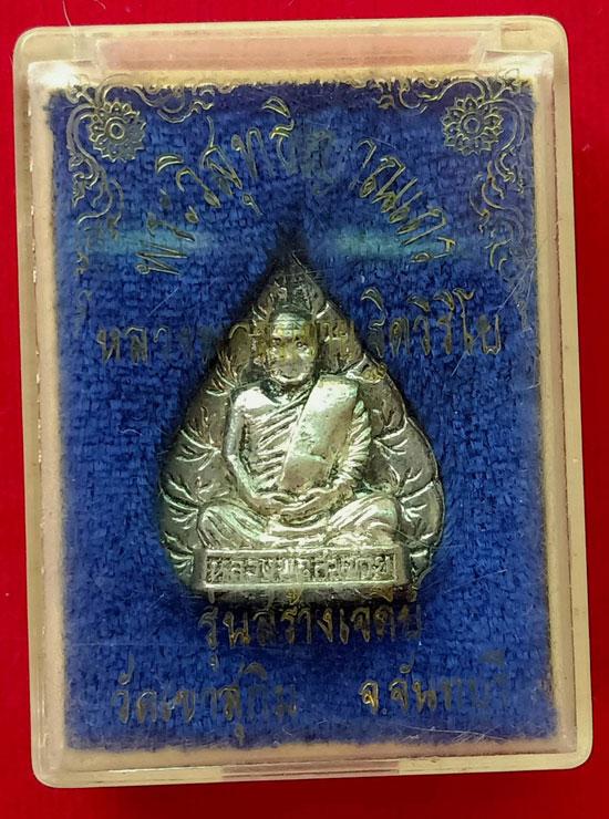 เหรียญหล่อใบโพธิ์เนื้อเงินหลวงพ่อสมชาย วัดเขาสุกิม รุ่นสร้างเจดีย์ มาพร้อมกล่อง