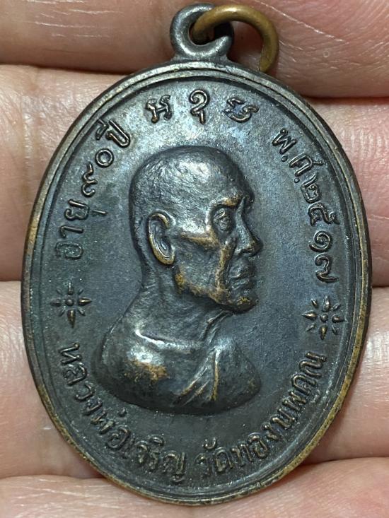 วัดใจเหรียญหลวงพ่อเจริญ วัดทองนพคุณ จ.เพชรบุรี พ.ศ. 2517 เนื้อทองแดงสภาพสวยมากรับประกันตามกฎ |