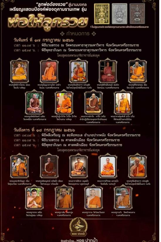 เหรียญเเสตมป์ องค์พ่อจตุคามรามเทพ พ่อให้ลูกรวย หลวงพ่อประสูติ พระอาจารย์ต้อม หลวงปู่อิ่ม พระอาจารย์เด่นดวง หลวงพี่เลี้ยง ปลุกเสก |