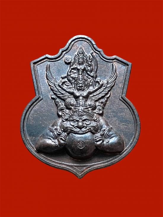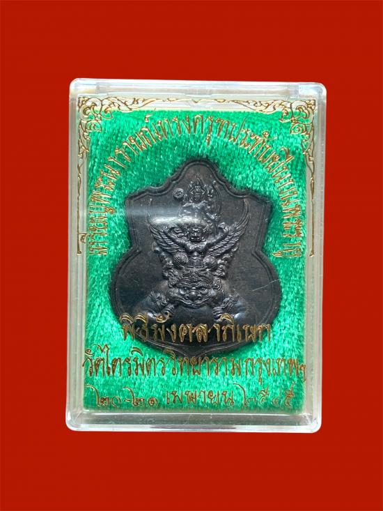 เหรียญนารายณ์ทรงครุฑประทับราหู ท่านเจ้าคุณธงชัย วัดไตรมิตรฯ รุ่นแรก เนื้อนวะโลหะ ปี 2545 หมายเลข 3595 มีโค๊ตและหมายเลขกำกับ พร้อมกล่องเดิม