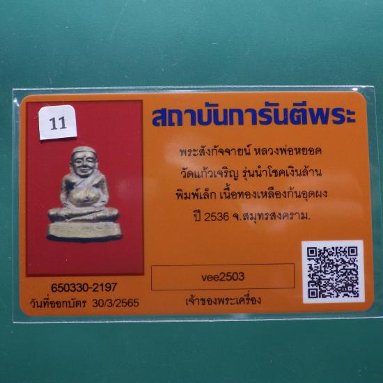 พระสังกัจจายน์หลวงพ่อหยอด รุ่นนำโชคเงินล้าน พิมพ์เล็ก เนื้อทองเหลืองก้นอุดผง วัดแก้วเจริญ ปี 2536.....11 ...(69.2.12 |