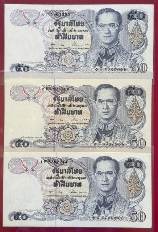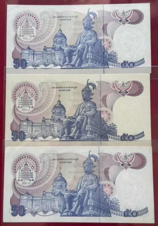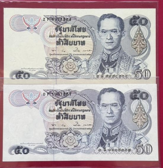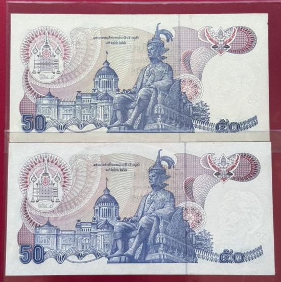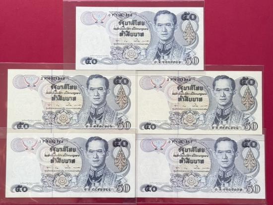 ธนบัตร 50 บาท รัชกาลที่ 9 แบบ 13 ลายน้ำสมเด็จย่า จำนวน 5 ใบ สภาพสวยตามรูป |