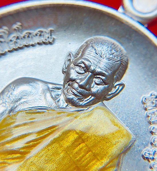 หลวงปู่มหาศิลา นารายณ์จักร เนื้อเงิน ลงยาจีวร ผิวสวย จมูก100 เลข537 กล่องเดิม นิยม คัดสวยๆ