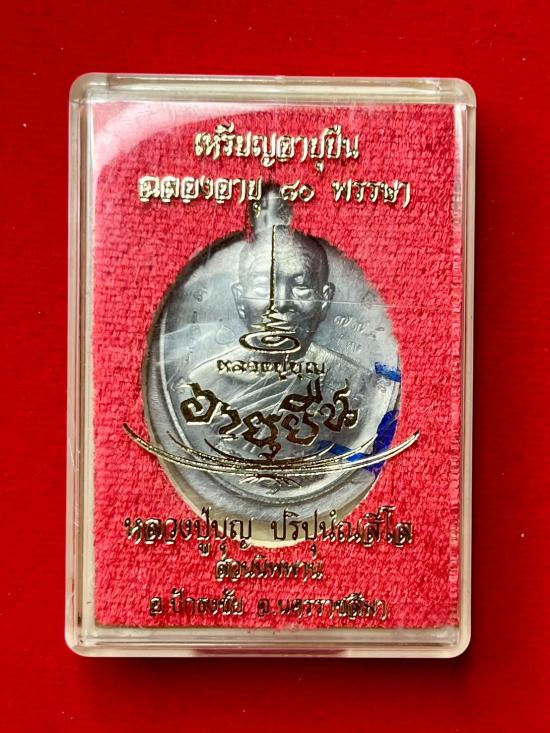 เหรียญอายุยืนฉลองอายุ 80 พรรษา หลวงปู่บุญ ปริปุนณสีโล วัดปอแดง (สวนนิพพาน) จ.นครราชสีมา (ไม่ตัดปีก |