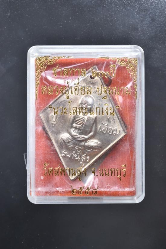 เหรียญข้าวหลามตัด หลวงปู่เอี่ยม วัดสะพานสูง เนื้อนวะโลหะ รุ่น ชาตกาล 200ปี จ.นนทบุรี