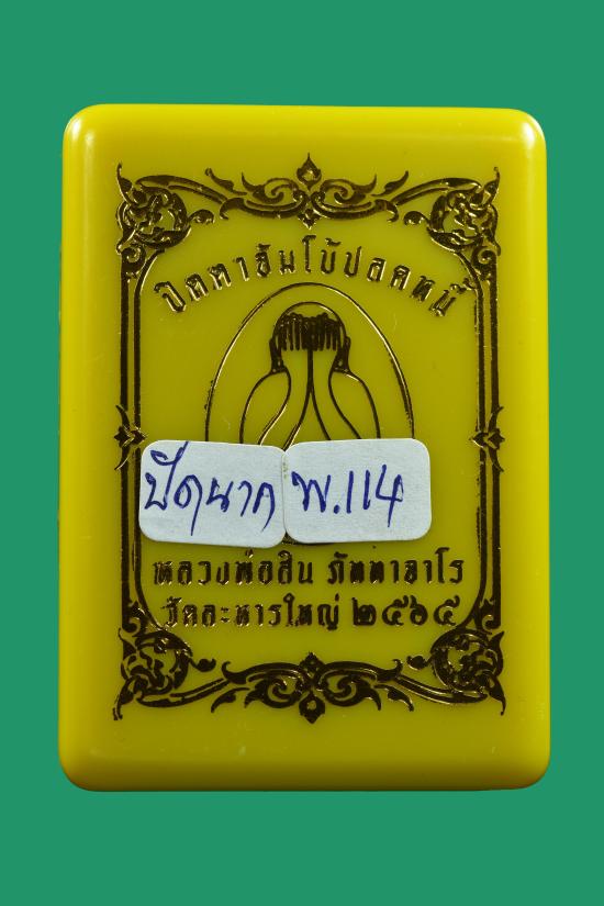 วัดใจ พระปิดตาจัมโบ้ ปลดหนี้ รุ่นแรก หลวงพ่อสิน วัดละหารใหญ่ จ.ระยอง ปี 2565 เนื้อผงใบลานปัดนาค ตอกโค้ดพิเศษ หมายเลข ๑๑๔ กล่องเดิม |