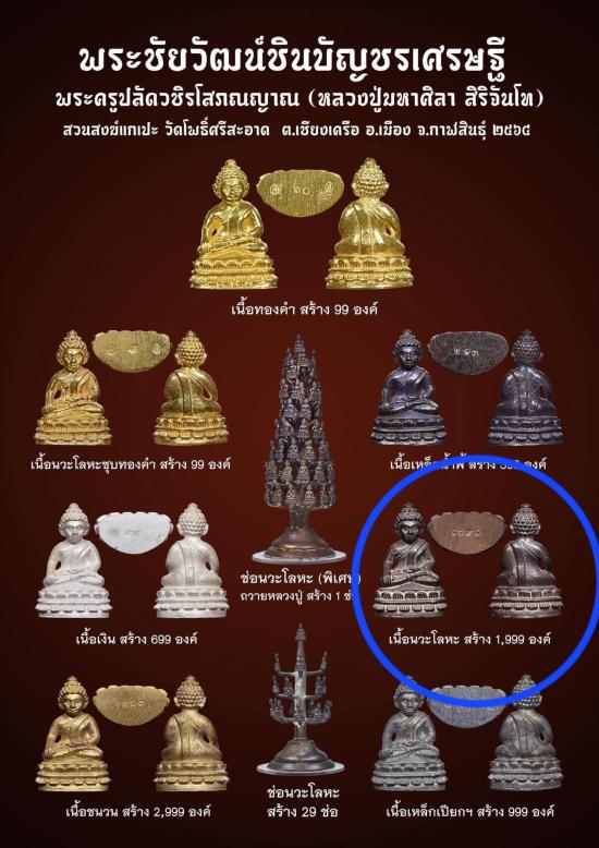 พระชัยวัฒน์ ชินบัญชรเศรษฐี รุ่นแรก ยุคต้น ปี64 หลวงปู่มหาศิลา หลวงปู่ศิลา สิริจันโท สวนสงฆ์แกเปะ วัดโพธิ์ศรีสะอาด จ.กาฬสินธุ์ เนื้อนวะโลหะ เลข ๑๖๒๓ มีกล่องเดิม |