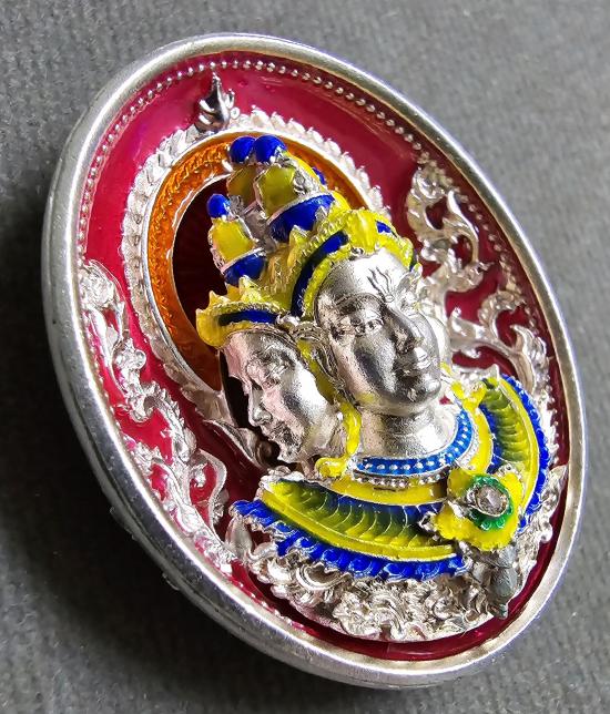 เนื้อชุบเงิน ลงยาชมพู องค์ชุบเงินลงยา ฝังพลอยชมพู พระสวยมากๆครับ