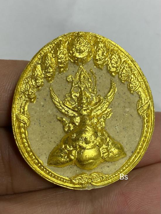 พระนารายณ์ทรงครุฑประทับพระราหู ปี48 เจ้าคุณธงชัย วัดไตรมิตรวิทยาราม เนื้อผงปิดทองบางส่วน ฝังยันต์ดวง พิมพ์ใหญ่