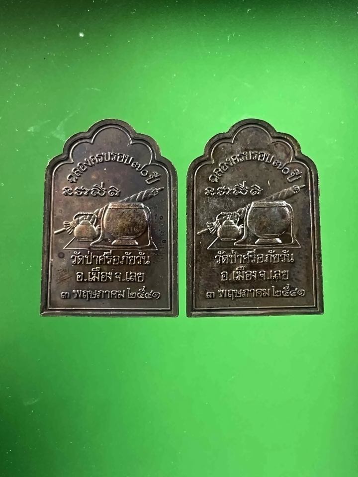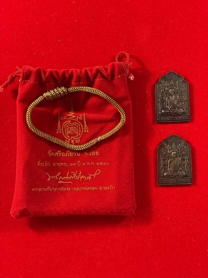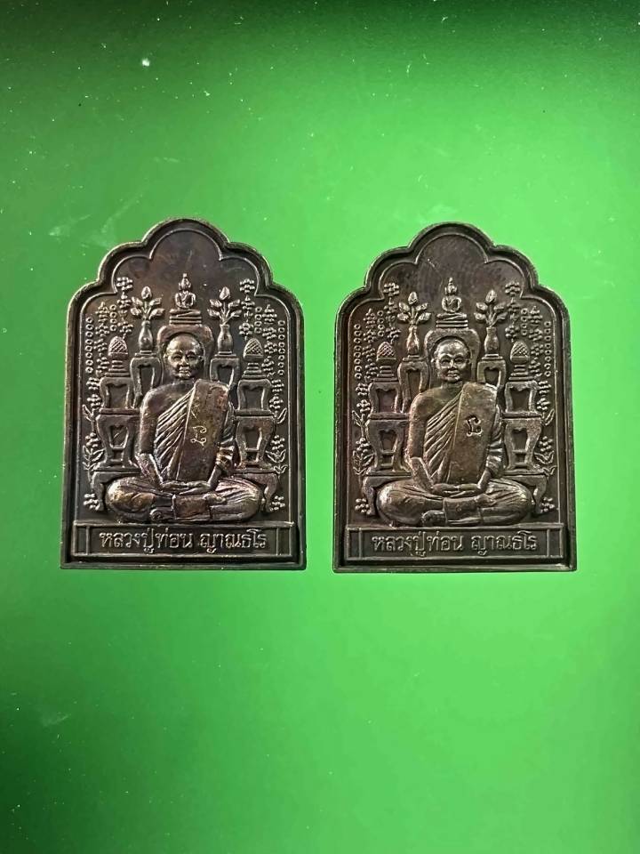 2 เหรียญโต๊ะหมู่ หลวงปู่ท่อน วัดศรีอภัยวัน จ.เลย ปี 2541 พร้อมถุงผ้าและสายสิญจน์ |