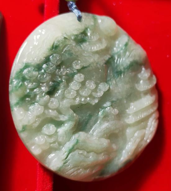 จี้หยกแกะลายวิวทิวทัศน์ ติดมอสเขียว สีธรรมชาติ ขนาด5.5ซม.พร้อมเชือกถัก แกะลายสวยๆ ราคาเบาๆค่ะ รับประกันตามกฏ |