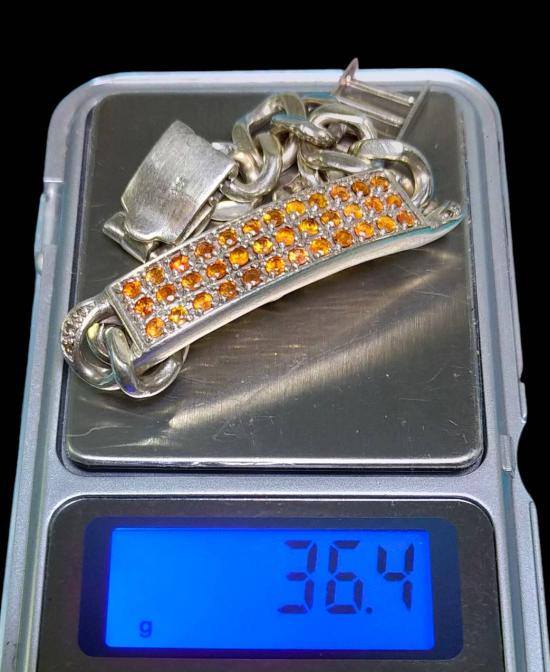 เลสข้อมือ (เงินแท้) ฝังพลอยบุษราคัม น้ำหนัก 36.4 กรัม