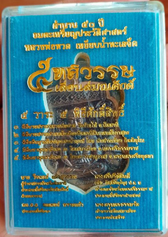 เหรียญเลื่อนสมณศักดิ์ หลวงปู่ทวดปี 58 เนื้อชนวนไม่ตัดปีกหลังกึ่งเรียบ (ชุดเนื้อเงินหน้ากากทองคำ) ตอกนัมเบอร์ 728 พร้อมกล่องเดิม สภาพสวย