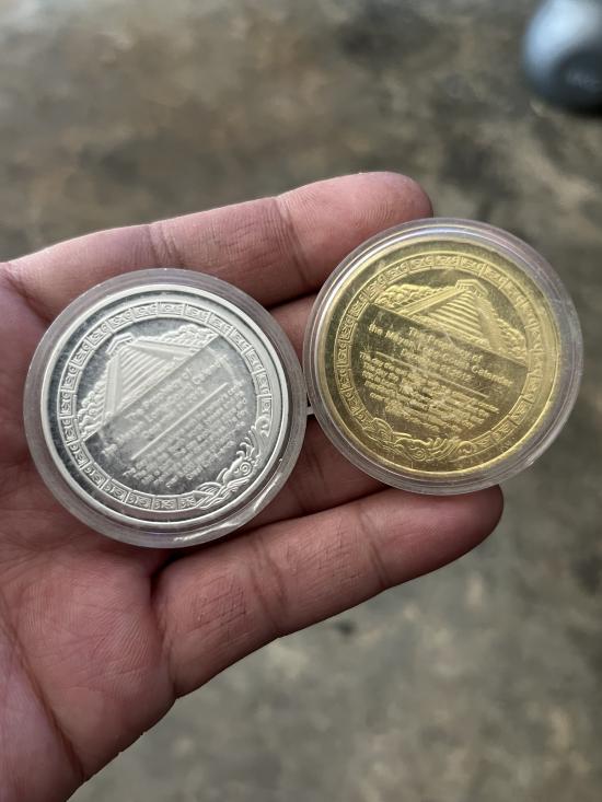 ชื่อพระเครื่อง เหรียญที่ระลึกมายา ปิรามิด ปฎิทิน มายัน 2เหรียญ ชุบขัดเงา สวยๆตลับเดิม