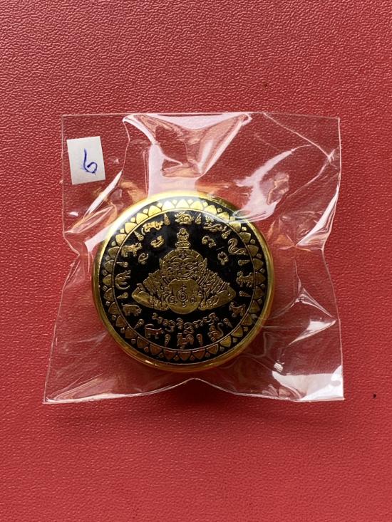 เคาะเดียวแดง สีผึ้งพระราหู รุ่น มงคลจักรวาล เนื้อ โลหะชุบทองลงยาสีดำขอบสีดำ ขนาด 3.2ซม |