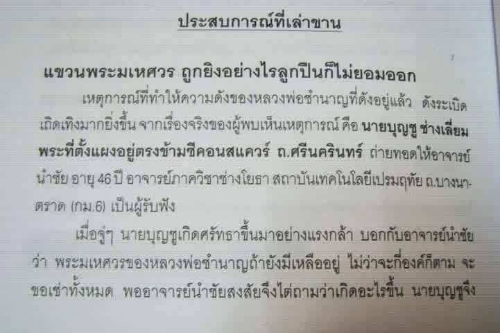 พระมเหศวร รุ่นแรก (ประสบการณ์)