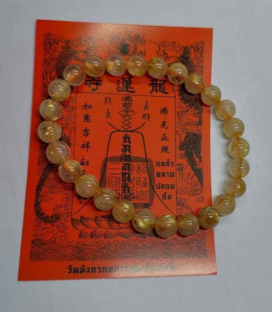 ข้อมือไหมทอง | Golded Rutilated Quartz ขนาด 6 มม. เส้นสวย กับ แผ่นยันต์ เทพเจ้าไฉ่ซิงเอี๊ย วัดมังกรกมลาวาส (เล่งเน่ยยี่) |