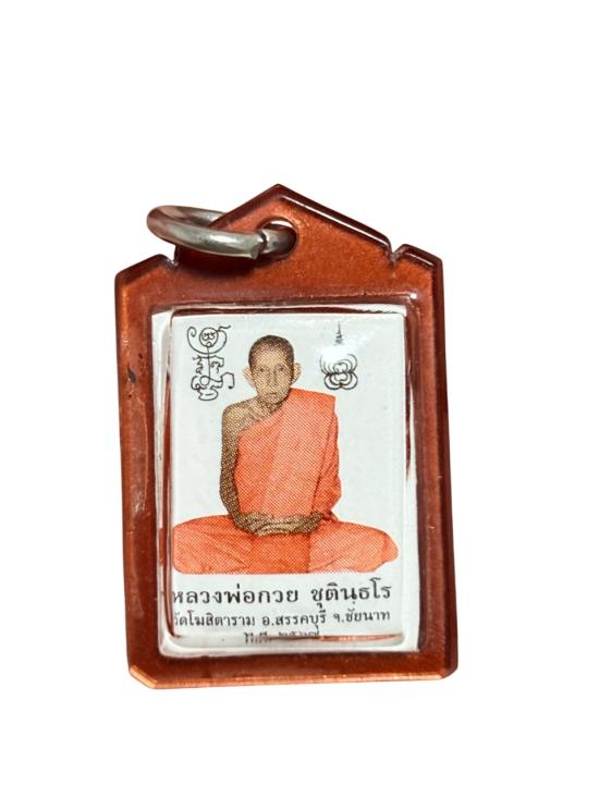 รูปหลังตะกรุดสามกษัตริย์ หลวงพ่อกวย วัดโฆสิตาราม ขนาดเล็ก ปี2567 เลี่ยมเดิมจากวัด
