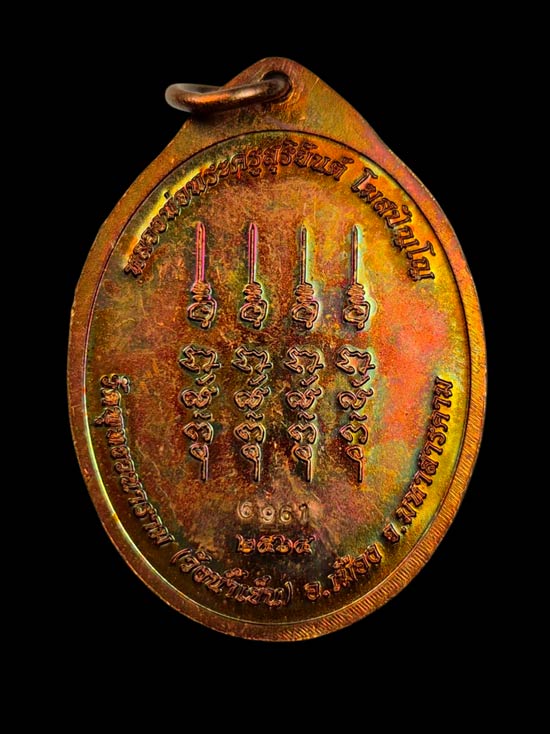 เหรียญ พลิกดวงเนื้อทองแดงผิวรุ้ง พระอาจารย์สุริยันต์ วัดป่าวังน้ำเย็น ปี 2564 หมายเลข 6961 |
